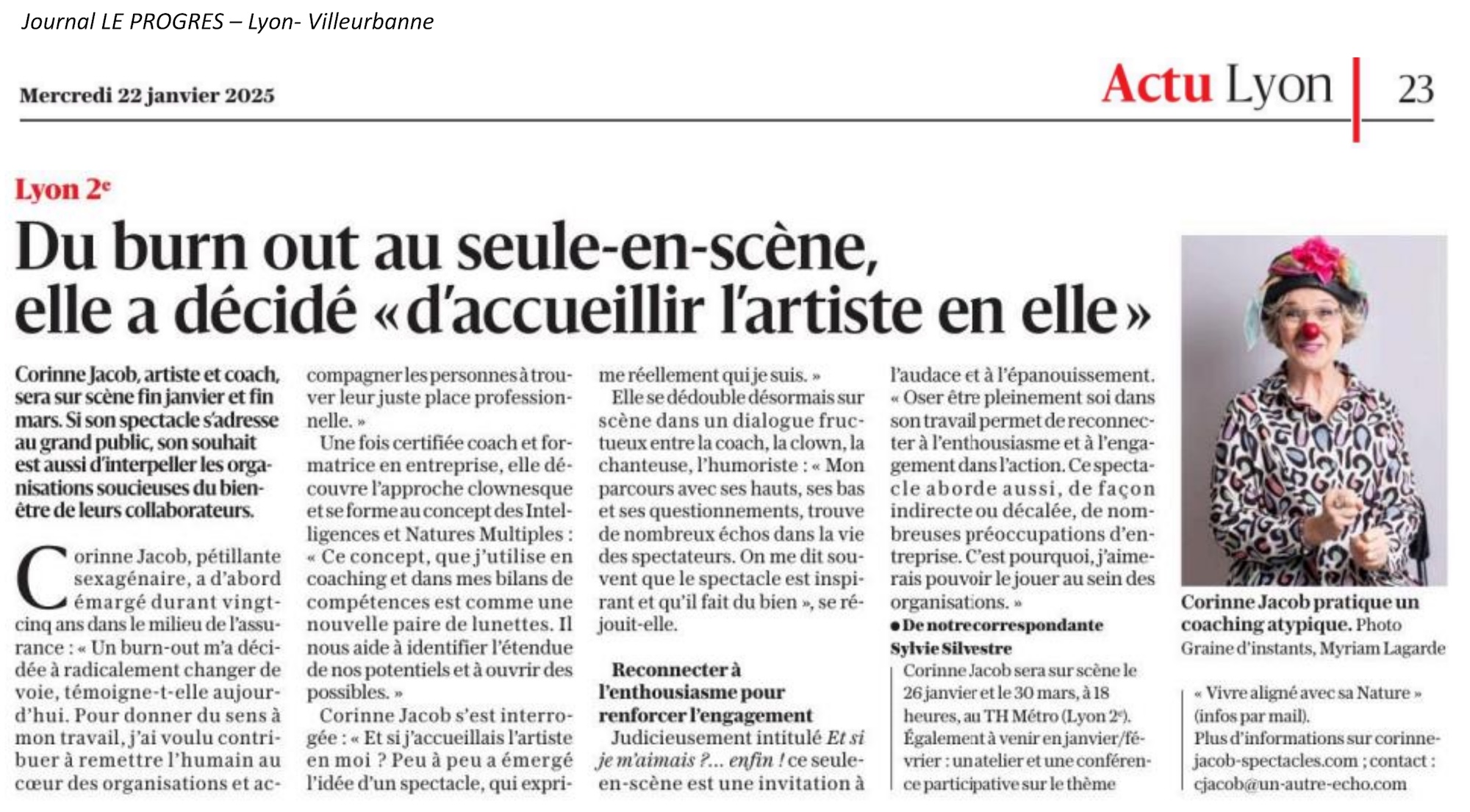 J’ai un plaisir – et un trac ! – fou à chaque fois que je le joue devant un public, car il fait me sentir pleinement vivante et me donne l’occasion de semer, autrement, quelques graines de réflexion pour… se faire du bien !